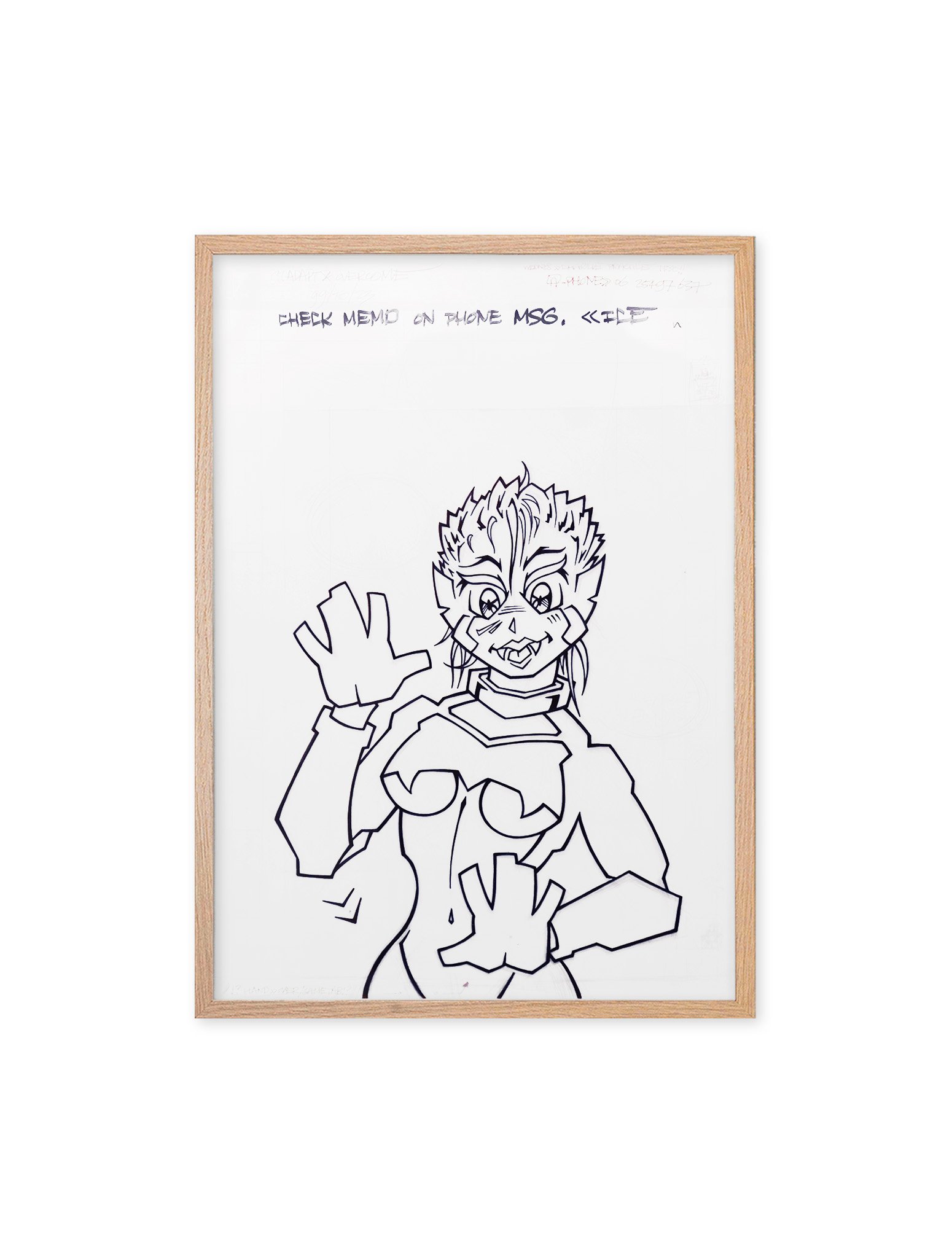 Original drawing by Dutch artist Angel (TBH GVB CTK), created in 1999. He drew his work, titled "Check Memo" with a marker on special paper, measuring 38 x 53 cm. The artwork comes in a natural wood colored frame, included in the price.